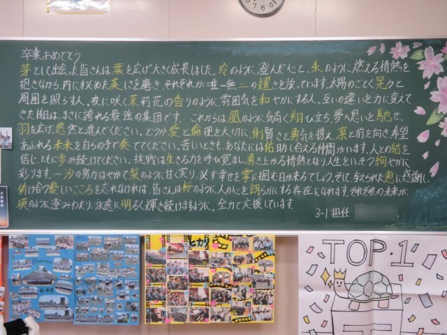 3月6日(金) 卒業生を待つ教室のようす【3年1組】