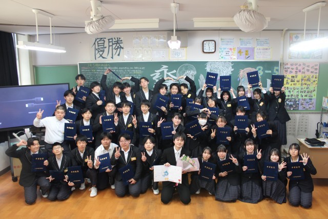 このクラスの担任をすることができてとても幸せでした。1年間たくさんの思い出をありがとうございました。自分の将来に向かって自信をもって進んでいってください。応援しています。