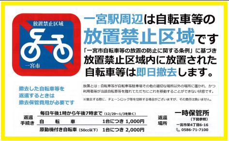 3月12日(木) 一宮駅周辺道路への自転車の放置防止について【一宮市よりお知らせ】