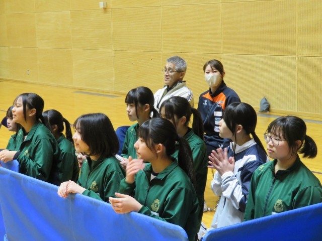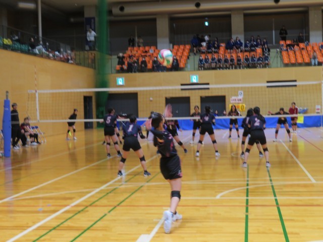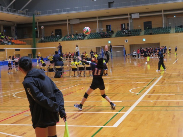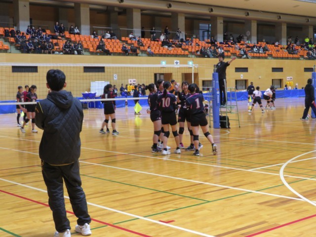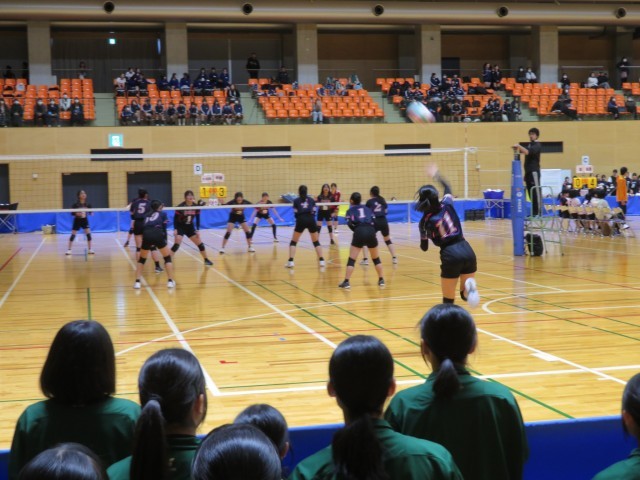 バレーボール部は総合体育館で開催されている春季一宮市民大会に出場しています。写真は、大和南中学校との対戦の様子です。仲間から大きな声援を受けて、コートいっぱいに躍動していました。市内のチームを相手に日ごろの練習の成果を発揮して、自信と課題をつかむ大会になることを応援しています。