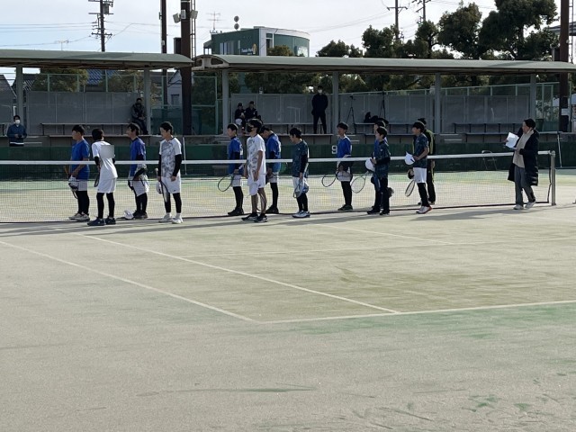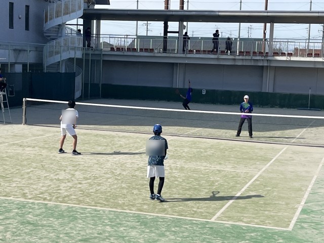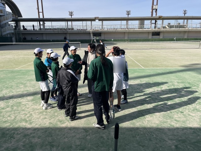 3月14日(土)一宮テニス場にて西尾張ジュニア研修大会が行われました。まず、予選リーグは、西成中・大里中との対戦で2勝し、1位で通過しました。選手たちとは、「まず1戦1戦大切にしよう」「気持ちを上手にコントロールしよう」と話し、試合に臨みました。結果、全試合、ペアで声をかけあい、セット内でミスを修正し、丁寧に進めることができました。