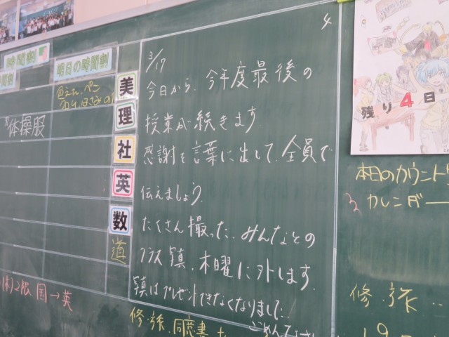 3月17日(火) 感謝の気持ちを言葉にして【2年黒板メッセージ】