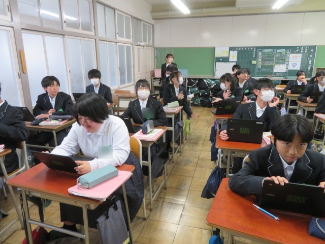 1年生の国語の授業のようすです。品詞について学んできたことをカフートの問題を解きながら楽しく学び直しをしていました。自信を深めることができましたね。