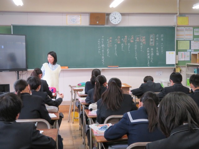 1年生の国語の授業のようすです。「活用しない自立語について知ろう」というめあてで「感動詞」について学んでいました。授業の後半では、感動詞と接続詞に関する問題に挑戦!理解を深めることができましたね。