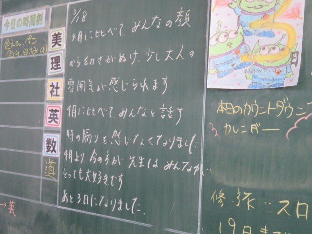 3月18日(水) みんながとても大好きです【2年黒板メッセージ】