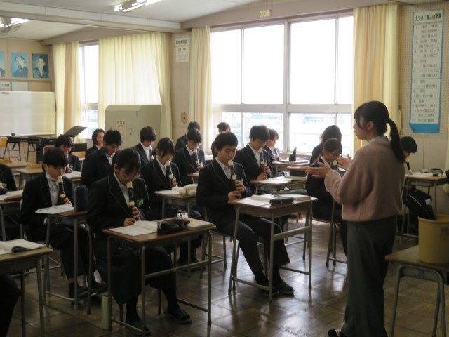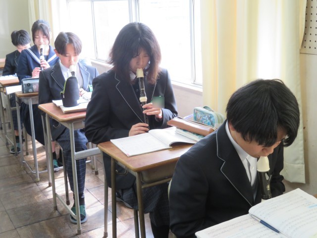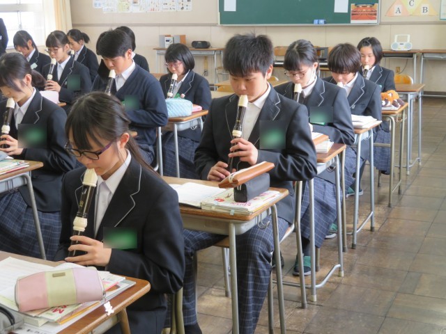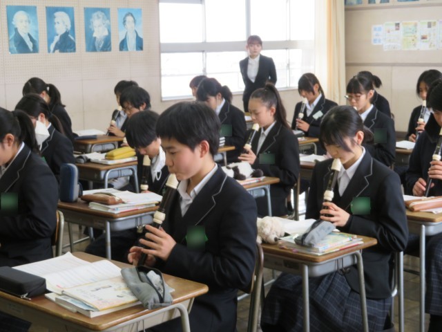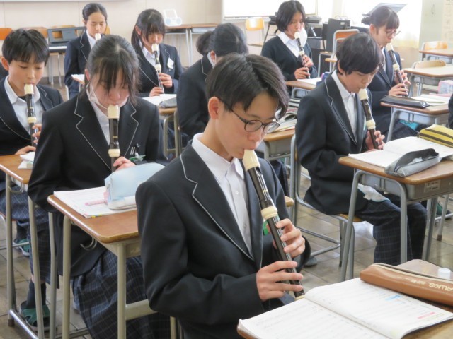 1年生の音楽の授業のようすです。アルトリコーダーで「威風堂々」の演奏に挑戦していました。楽譜の読み方を確認した後、旋律の繰り返しの場所に気をつけながらすてきな音色で演奏できましたね。春休みにはぜひ家族にも演奏を聞かせてあげましょう(^^)/