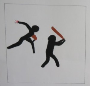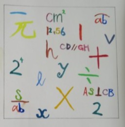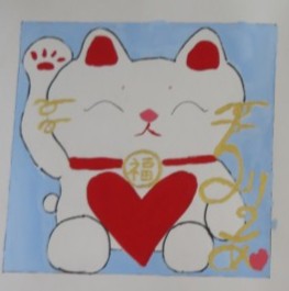「わかりやすデザインで形や色の調和を考えて完成させよう」というめあてで1年生が製作した美術の作品を紹介します。テーマは「野球」と「福を呼ぶまねき猫」「猫カフェ『Cats』」「数学マーク(記号バージョン)」です。