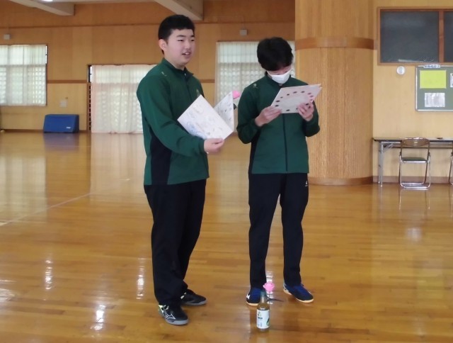 部活動の最後の時間には、卒業生部員から後輩に向けて応援のメッセージを、一人ひとり話してもらいました。一方の後輩1・2年生からは、卒業生部員に向けて前々から準備・作成してきた色紙を、先輩のそれぞれにプレゼントすることができました。