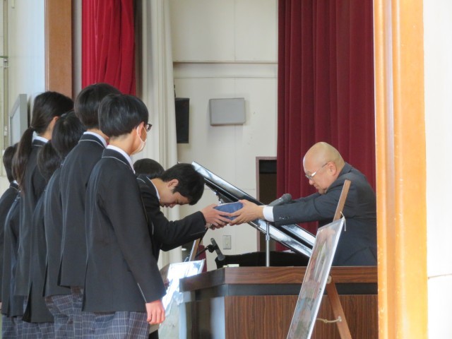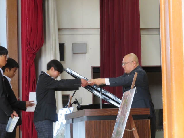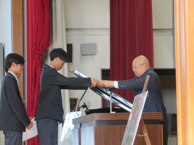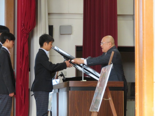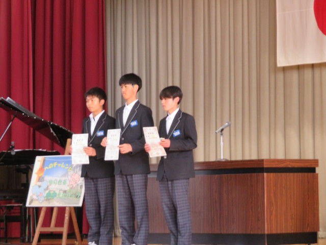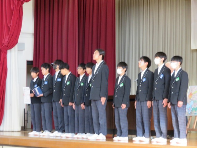 男子ソフトテニス部とサッカー部西尾張代表選手が大会で優秀な成績を収めたので、表彰伝達で披露され、大きな拍手を送られました。おめでとうございました(^^)/