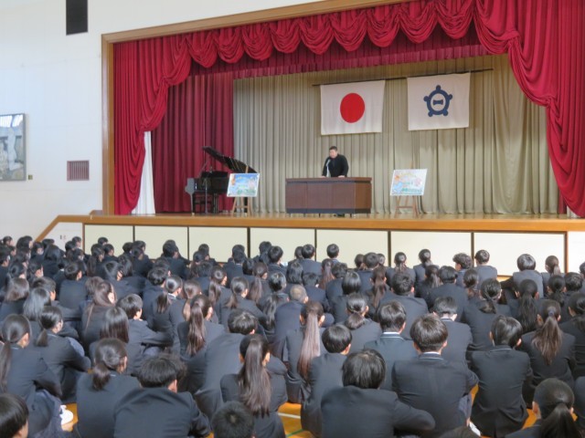 修了式の後、生徒指導担当の先生と安全委員会のみなさんから春休みの生活について話がありました。一人一人が安全な生活ができるように心配りし、充実した春休み期間にしましょう(^^)