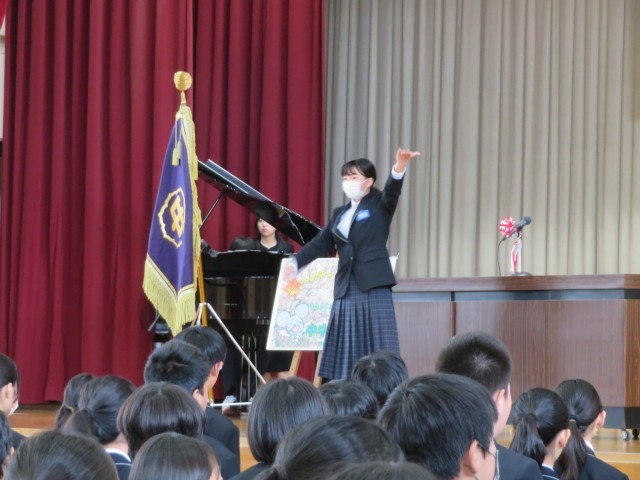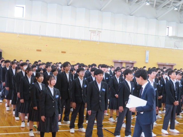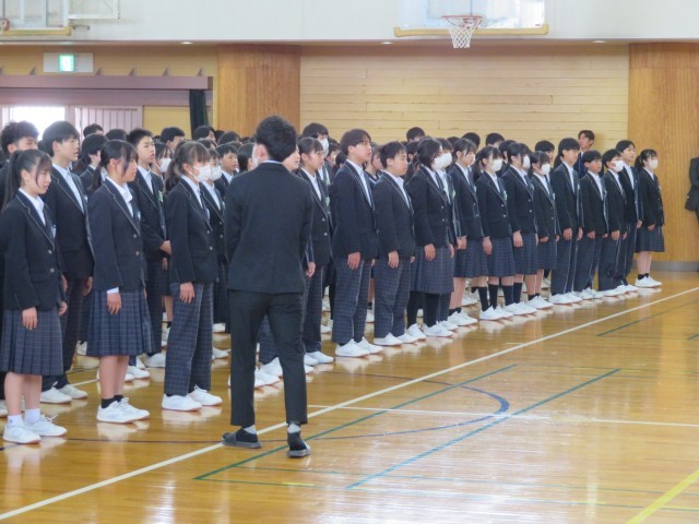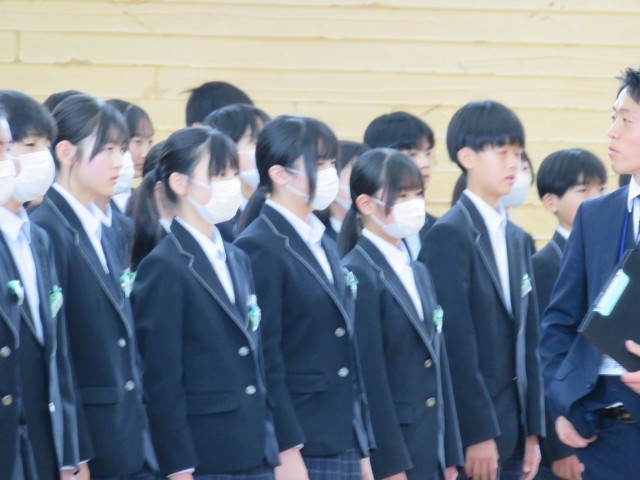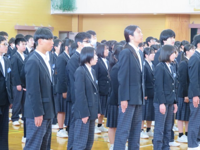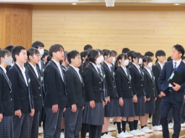 始業式の最後に校歌を歌いました。1年生に早く覚えてもらえるように、そして入学おめでとうという想いで、先輩たちが心をこめて歌いあげてくれましたね。