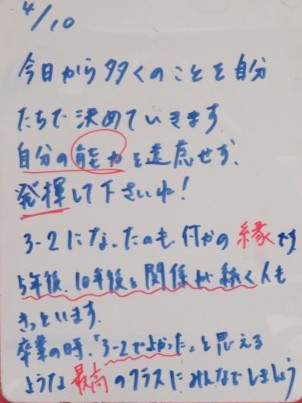 4月10日(金) クラスの縁を大切にしていこう【3年黒板メッセージ】 公開日 2026/04/10 更新日 2026/04/10 人権教育といじめ対策 担任の先生からのメッセージです(^^)/ 3年 全学年