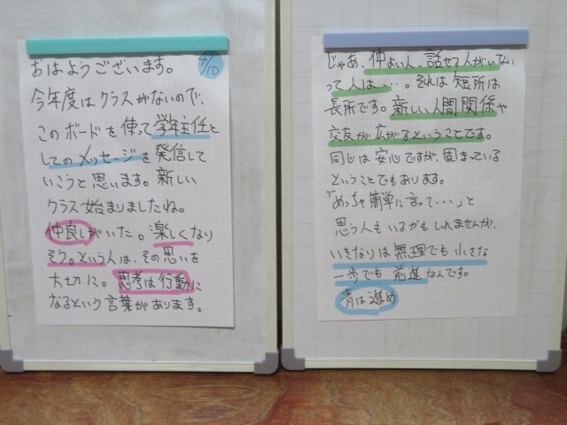 4月10日(金) 青は進め!交友を広げるチャンスに(^^)/【3年主任メッセージ】 公開日 2026/04/10 更新日 2026/04/10 人権教育といじめ対策 学年主任の先生からのメッセージと、廊下の掲示物です。 3年 全学年