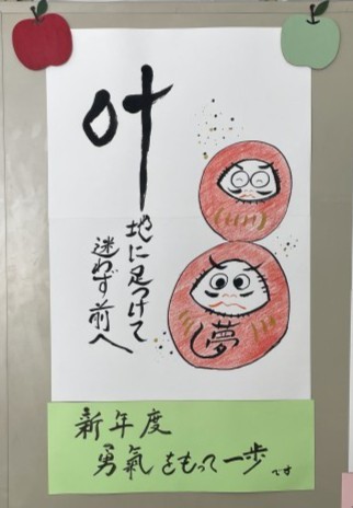 (写真はサポートルームの先生作のメッセージ掲示物です)
