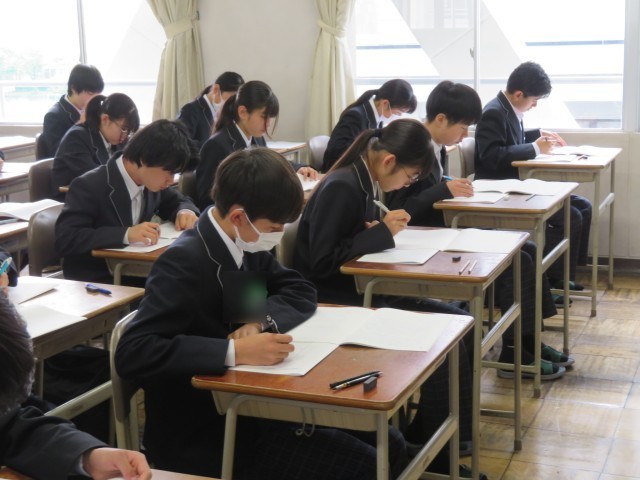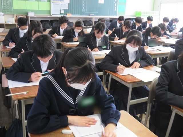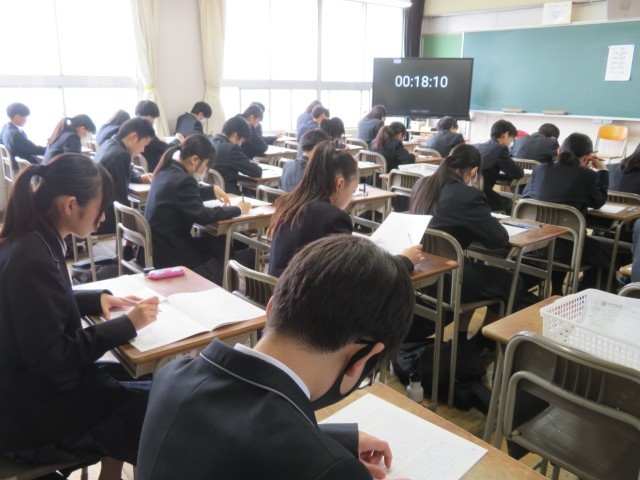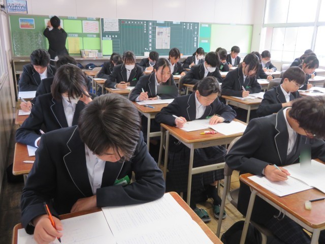 写真は真剣な表情で問題に向き合う2年生の様子です。