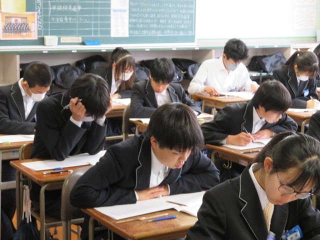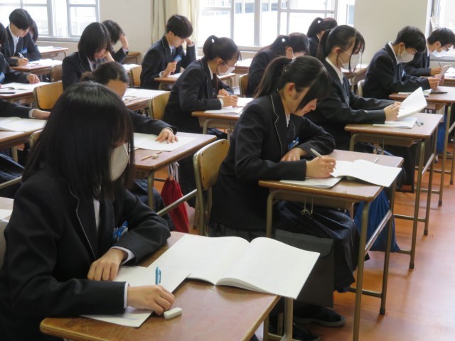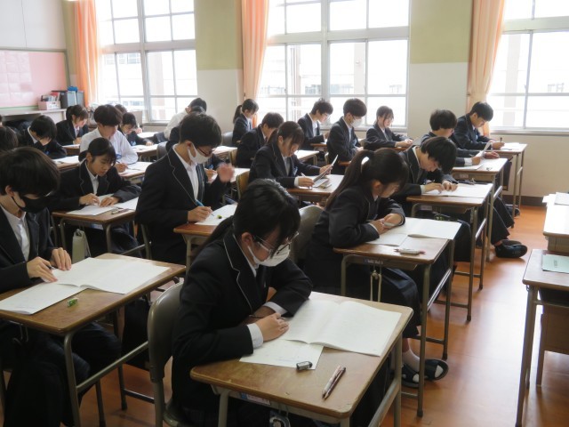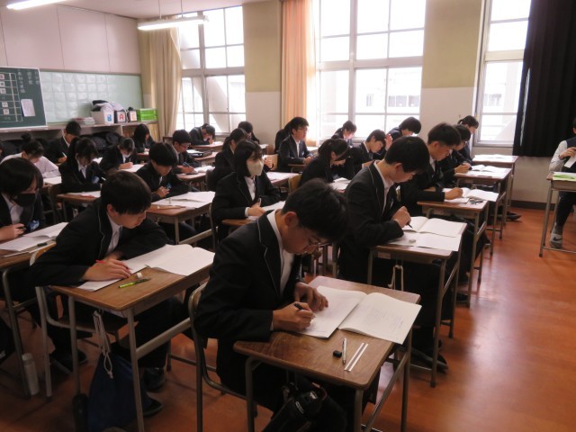 さすがは最高学年。テスト開始の合図とともに一斉に問題に没入し、一瞬たりとも集中を切らさない姿には、受験生としての自覚と気迫が満ち溢れていました。