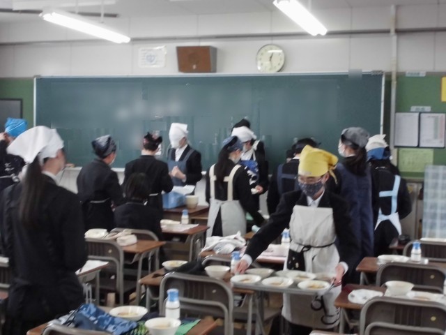 1枚目は2年生の給食の準備の様子です。てきぱきとクラスの仲間のために配膳していました。