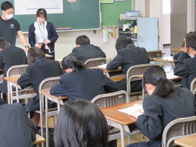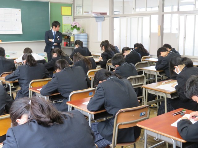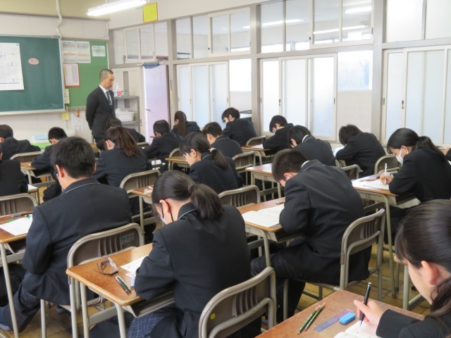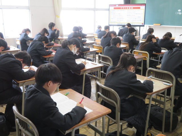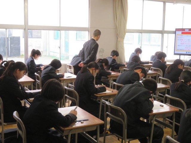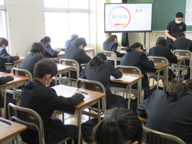 モニターに映し出された「テストの約束」をしっかり守り、教室には鉛筆を走らせる音だけが響いています。広い範囲からの出題に戸惑った人もいたかもしれませんが、最後まで諦めずに問題用紙と向き合う姿がとても素敵でしたよ。地理や歴史の知識を総動員して、一問一問を大切に解き進めていましたね。