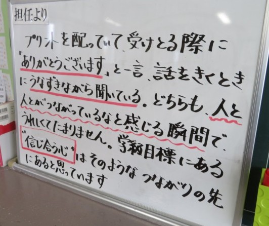 4月14日(火) 信じ合う心【1年黒板メッセージ】
