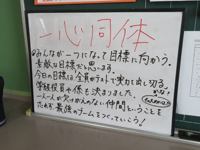 4月14日(火) 一心同体【1年黒板メッセージ】