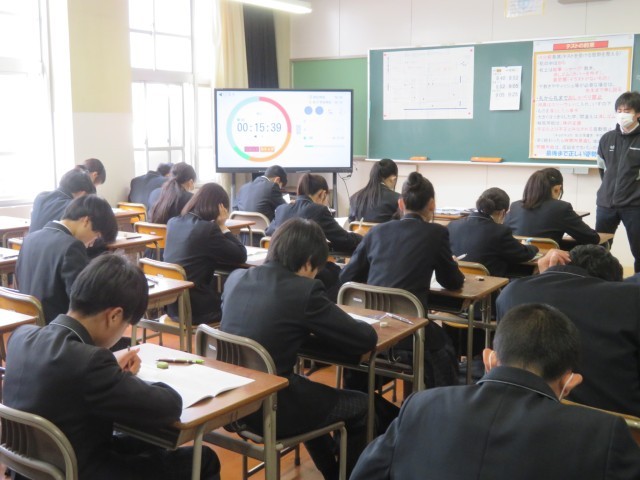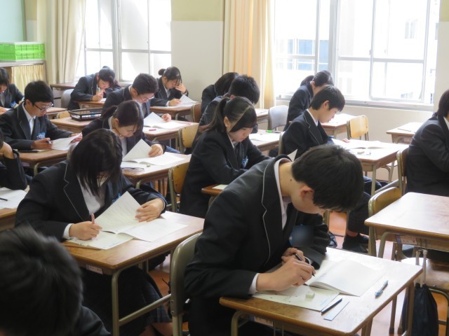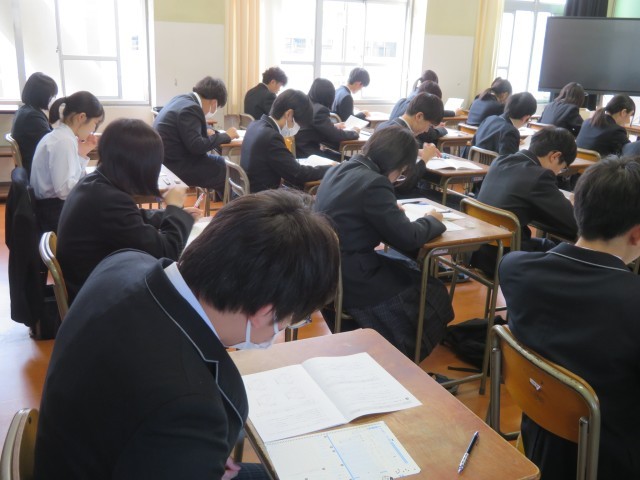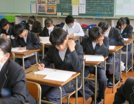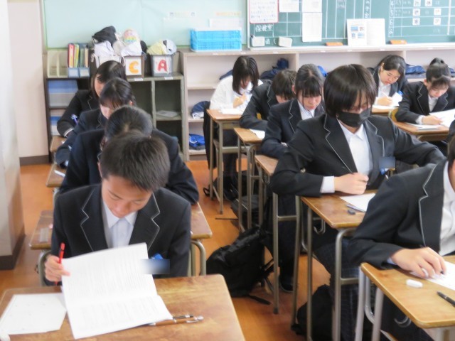 長い読解文を素早く読み解き、筆者の主張や登場人物の心情を的確に捉えようとする鋭い眼差しが印象的です。進路を意識し始める時期だからこそ、このNRTは現在の自分の位置を知るための重要な指針となります。一分一秒を惜しんで見直しをする姿に、最上級生としての自覚と気迫を感じました。