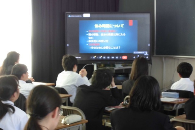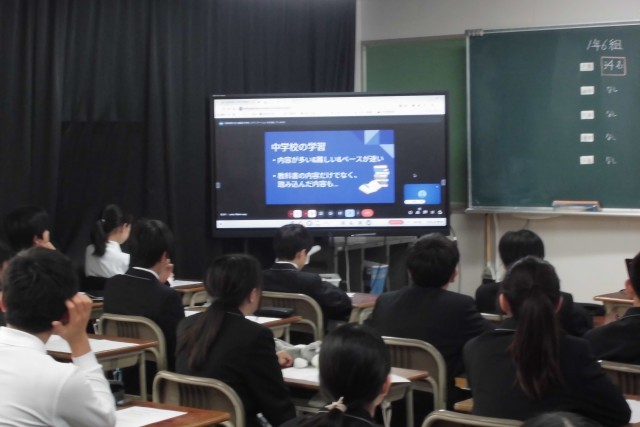 4時限目に1年生はオンライン学年集会を行いました。学習副主任、生活副主任の先生から話がありました。学習に関しては、明日から授業が始まります。教科担任の先生との出会いを大切にし、勉強に励みましょう。生活面では、ルールを守り、みんなが安心して過ごせるようにしていきましょう。先生、仲間との心が通い合った学年にしていってほしいです。