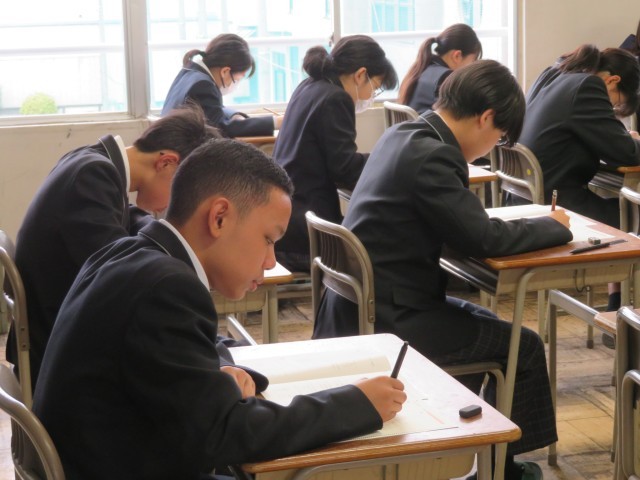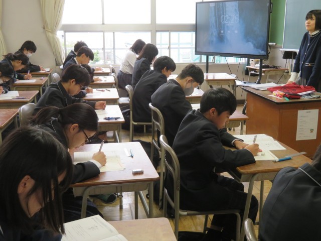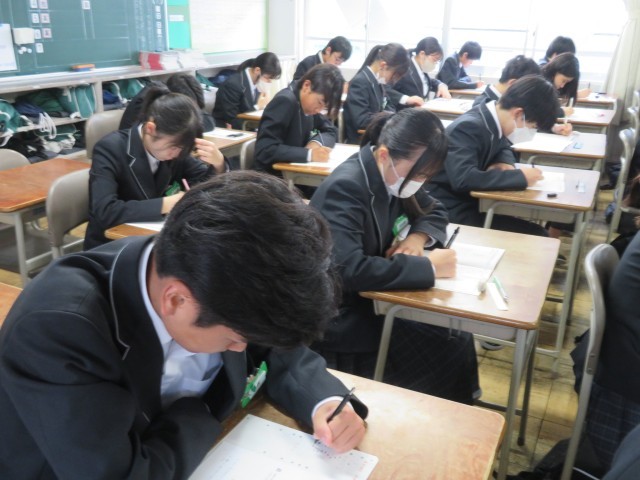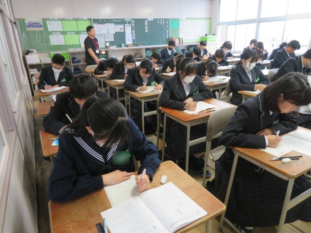今日はNRTテスト2日目に挑戦しています。写真は2年生の1時間目、理科のテストのようすです。じっくりと考えながら頑張っていましたね。2時間目は国語のテストに取り組みます。午後はいよいよ授業が始まります。教科担任の先生との出会いや新しい学習が楽しみですね。