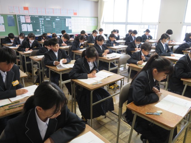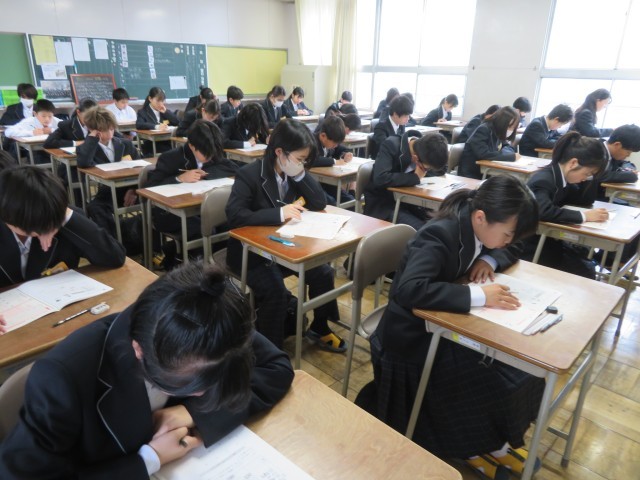 今日はNRTテスト2日目に挑戦しています。写真は1年生の1時間目、英語のテストのようすです。集中して頑張っていましたね。2時間目は理科のテストに取り組みます。午後はいよいよ授業が始まります。教科担任の先生との出会いや新しい学習が楽しみですね。