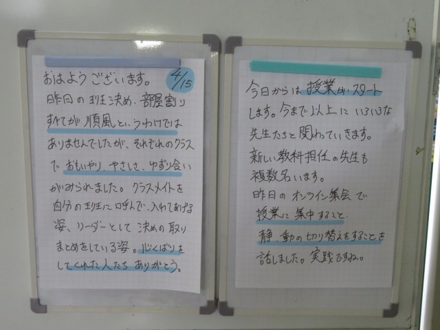 4月15日(水) みんなのしあわせのための心配りをありがとう【3年主任メッセージ】