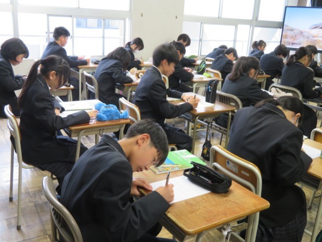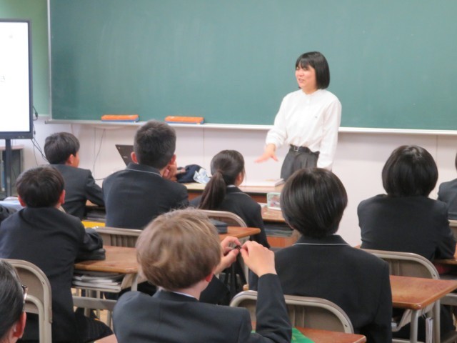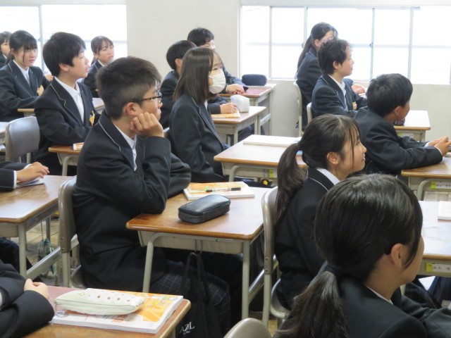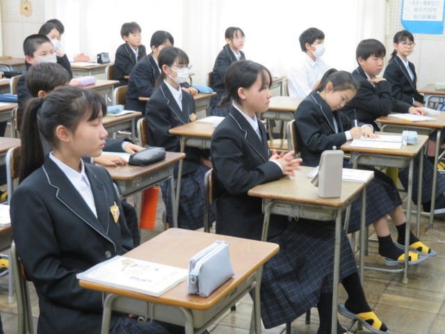 1年生の家庭科・英語・音楽の授業のようすです。どんな先生に教えてもらえるのか、自己紹介を楽しく聞くことができました。1年間の学習内容の説明も聞き、これからの授業が楽しみになりましたね。