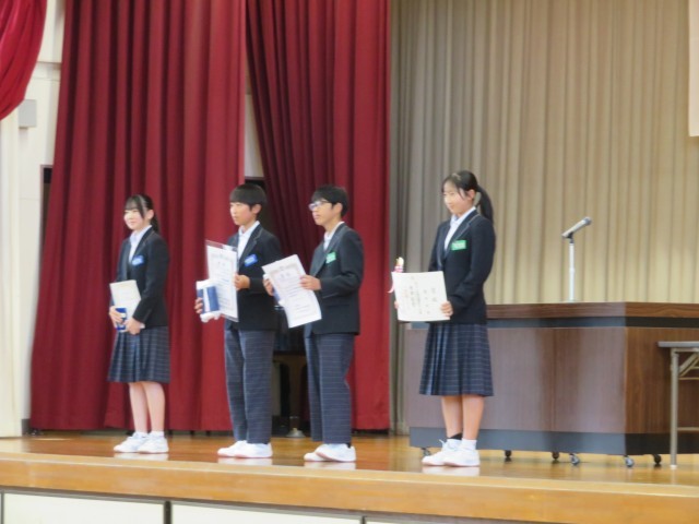 本日の全校集会で、表彰伝達を行い、大きな拍手が送られました。受賞されたみなさんおめでとうございます!