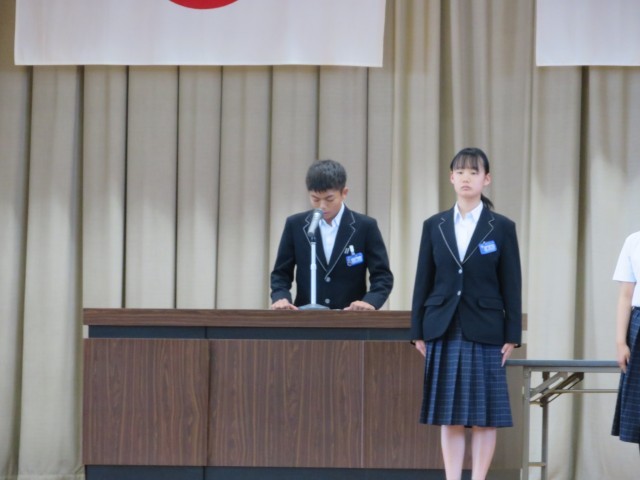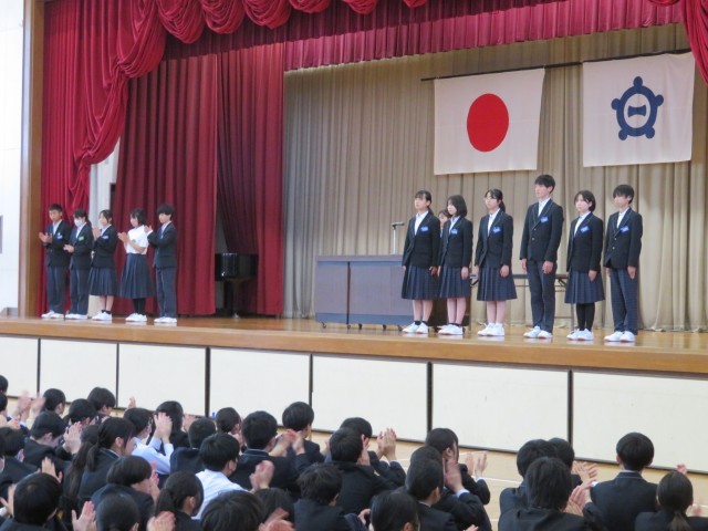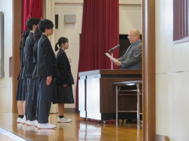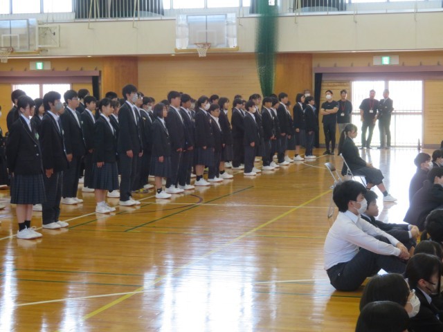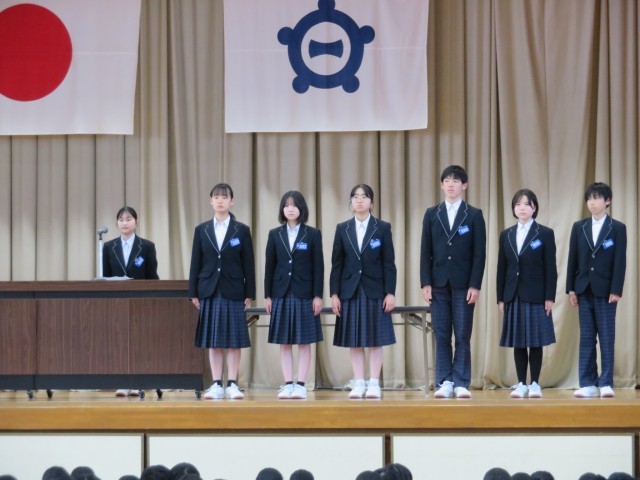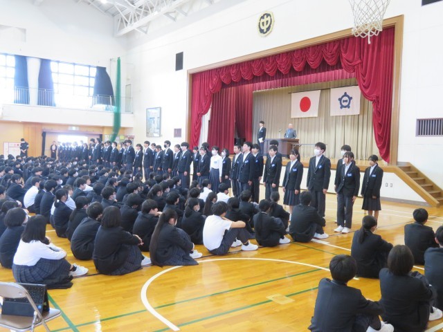 5時間目の時間を使って、前期役員の任命式を行いました。また、後期役員の退任あいさつ・前期役員就任あいさつがありました。全校生徒から感謝と応援の大きな拍手を送られました。後期役員の皆さん、ありがとうございました。前期役員の皆さん、リーダーとしての活躍を大いに期待しています。