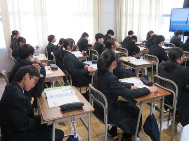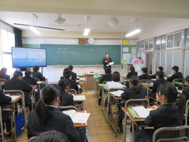 1年生の英語の授業のようすです。「アルファベットの音と文字を確認しよう」というめあてで学習を進めていました。とってもすばらしい発音ができる子がいて、先生からほめてもらっていましたね。