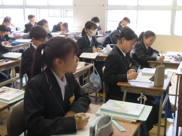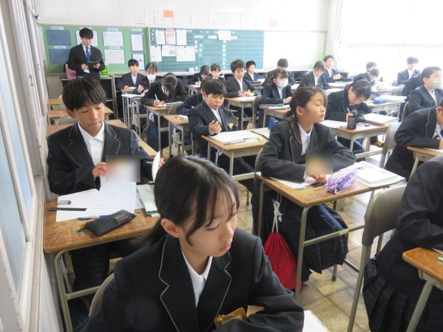 1年生の数学の授業のようすです。「『-(マイナス)』のついた数について学ぼう」というめあてで学習を進めていました。マイナスのついた数はどういう数か説明することができるようになりましたね。
