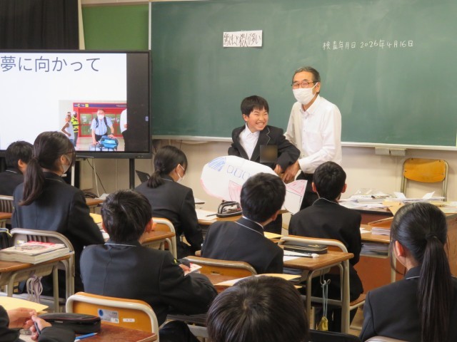 1年生の社会の授業のようすです。先生手作りの飛行機にのって、どこを訪問したのでしょうか。何やらとっても楽しそうで、笑顔がいっぱい広がる時間になりましたね。