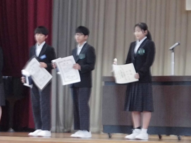 テニスの大会で入賞した生徒と書き初めで中日新聞社の理事長賞を受賞した生徒の表彰がありました。