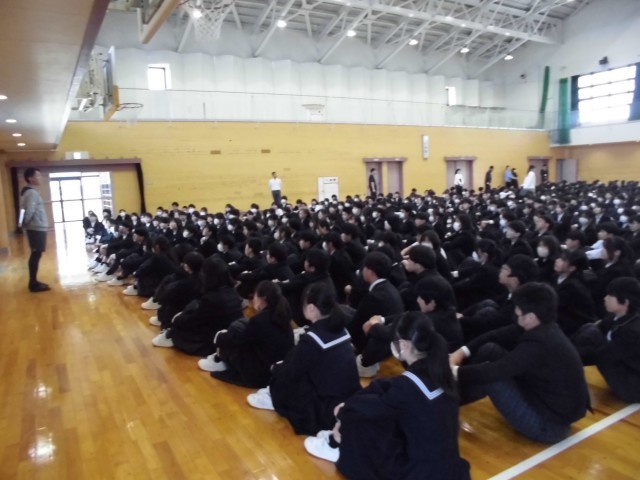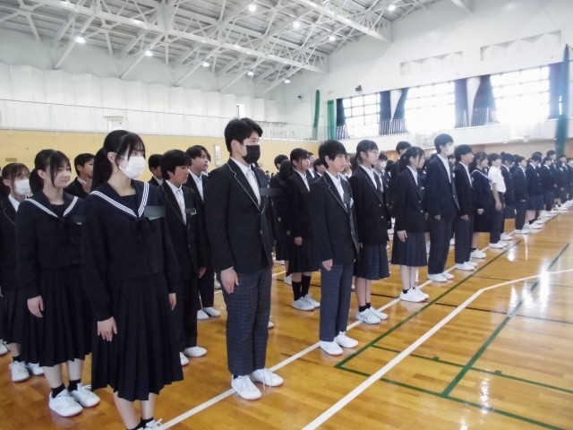 今日の5時間目はアリーナで表彰と任命式が行われました。