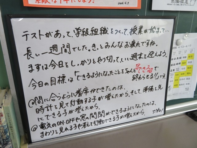 4月18日(土) ちゃんと「できる」で終わらせる(^^)/【1年黒板メッセージ】