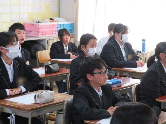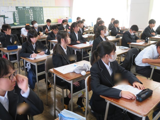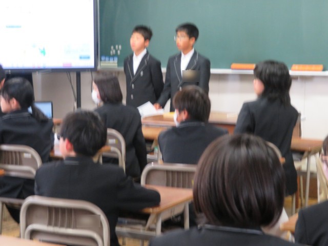 1年生の4時間目、総合の授業のようすです。6月に計画している校外学習について説明を聞いたり準備を進めたりしていました。みんなの絆が深まり、校内では体験できないような経験を積んで、成長できる行事をみんなの手で作り上げていこうね(^^)/