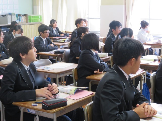 3年生の英語の授業のようすです。「『~したことがある』と経験を伝える表現を知ろう」というめあてで学習を進めていました。