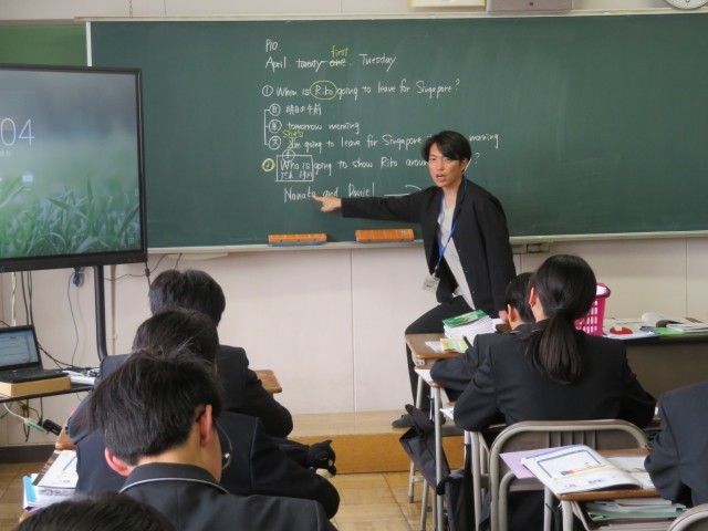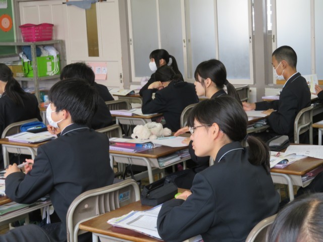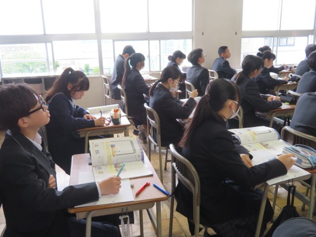 2年生の英語の授業のようすです。「be going to~」の表現について理解を深めていました。たくさん例文をつくって表現に慣れていきましょう(^^)/