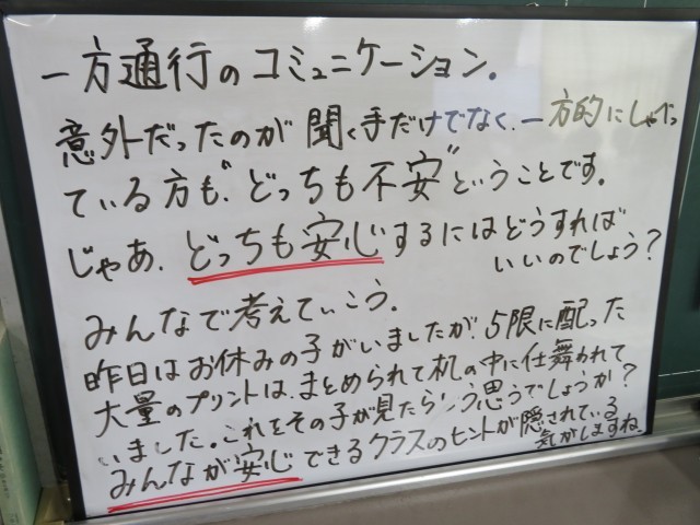 4月21日(火) 「どっちも安心」にするために【1年黒板メッセージ】