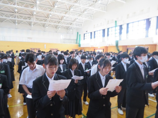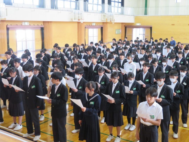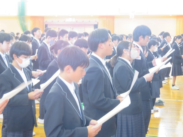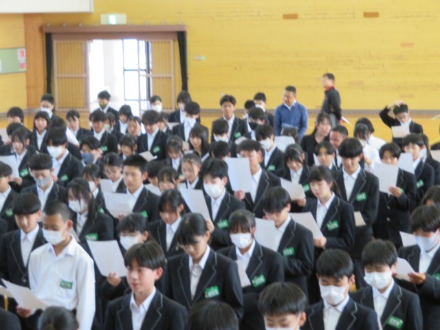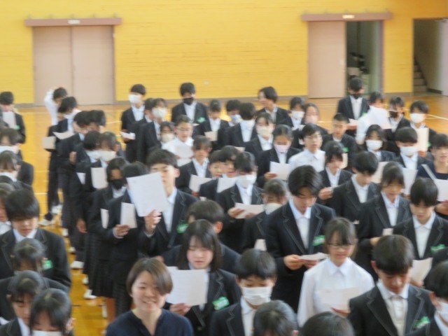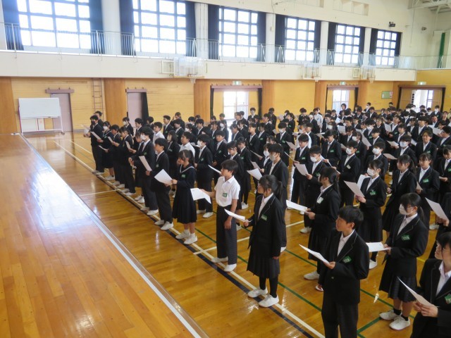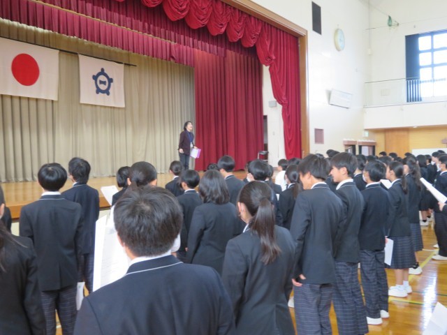 2年生のみなさん、おはようございます!気持ちよくめざめて朝の活動に取り組むことができているでしょうか。写真は今週の学年集会で、野外教育活動に向けて初めてキャンプファイヤーで歌う曲の練習をしたときの様子です。学年の先生から「この学年のみんなが口ずさんで、元気になることができるような歌にしよう」という呼びかけがありました。練習している皆さんの表情がとても素敵で、私もいっしょに歌いたくなってしまったくらいです。思い出に残るキャンプファイヤーをみんなで作り上げてくれることでしょう。楽しみにしていますよ!(^^)!