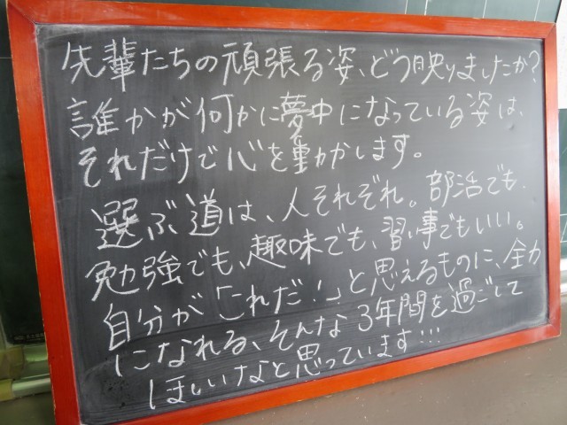 4月22日(水) 自分が「これだ!」と思えるものを【1年黒板メッセージ】 公開日 2026/04/22 更新日 2026/04/22 人権教育といじめ対策 担任の先生からのメッセージです(^^)/ 1年 全学年