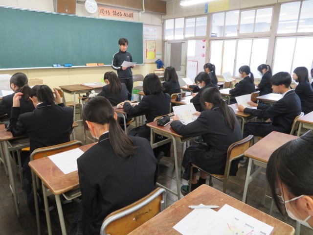 2年生の朝の時間のようすです。野外教育活動の実行委員が集まって、担当の先生からの説明を聞いていました。2年生の行事を盛り上げようと、多くの生徒が実行委員に名乗りを上げてくれてとてもうれしいです。活躍を大いに期待していますよ( ^ω^ )
