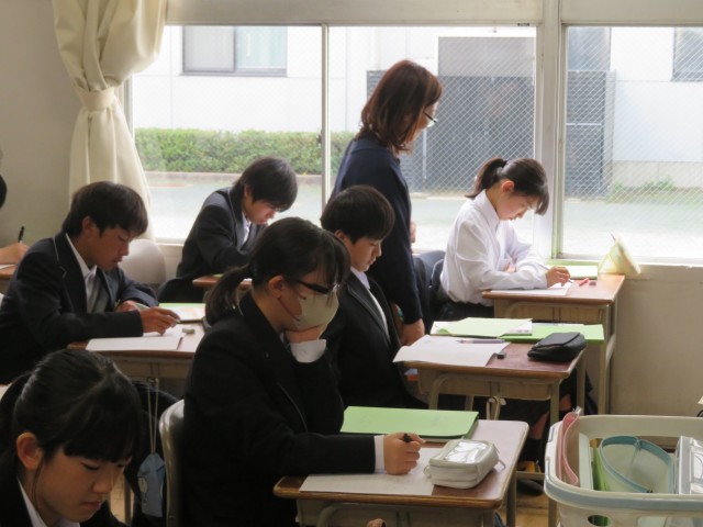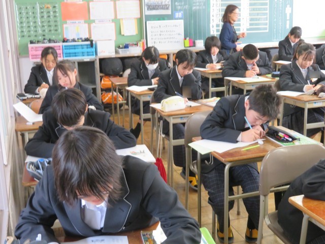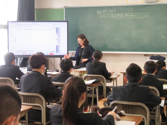 1年生の英語の授業のようすです。「アルファベットの音から単語を覚えられるようにしよう」というめあてで学習を進めていました。音をヒントにたくさん単語を覚えられるようにがんばっていましたね。