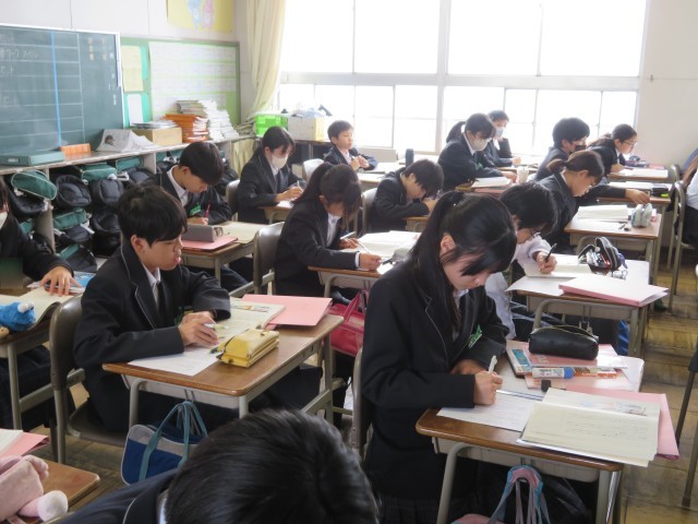 2年生の英語の授業のようすです。「人物の心情変化を捉えよう」というめあてで学習を進めていました。登場人物の気持ちを読み取ることで作品への理解を深めることができましたね。
