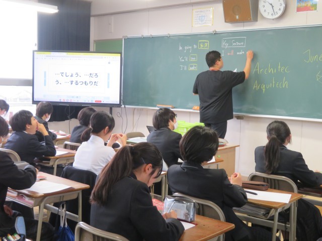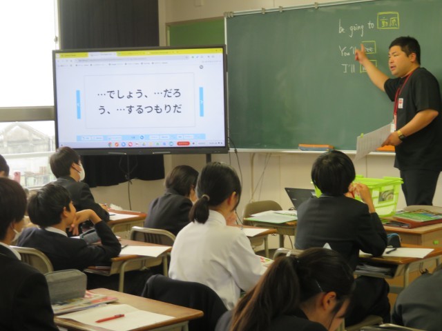 2年生の英語の授業のようすです。「~でしょう、~だろう、~するつもりだ」という表現について学んでいました。うまく使いこなせるように、例文をたくさん作って慣れていきましょうね。