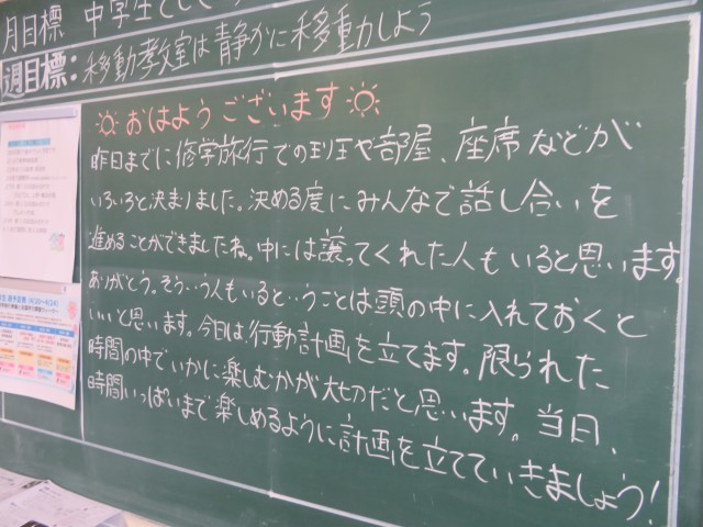 4月24日(金) 時間いっぱい楽しめるように【3年黒板メッセージ】 公開日 2026/04/24 更新日 2026/04/24 人権教育といじめ対策 担任の先生からのメッセージです(^o^) 3年 全学年