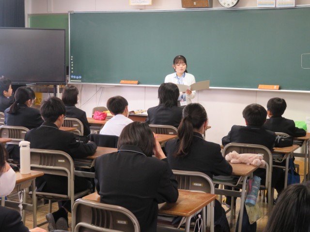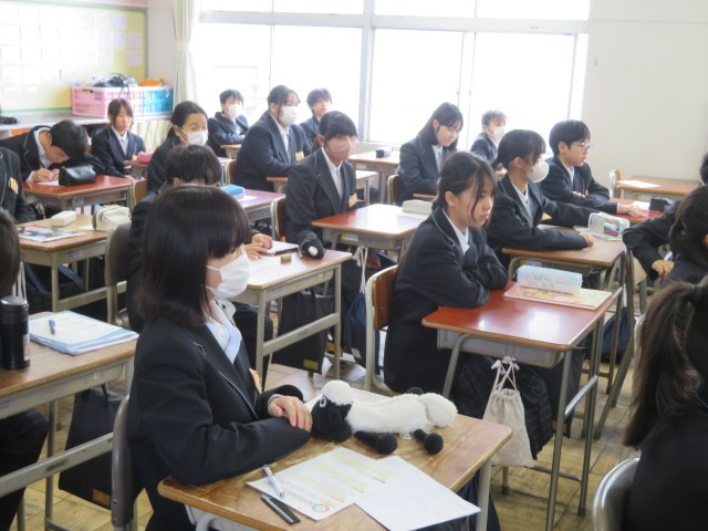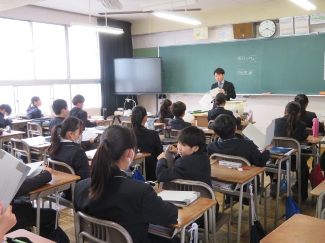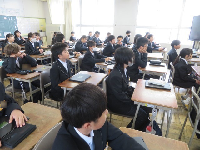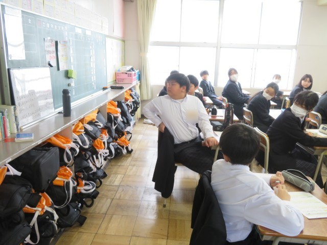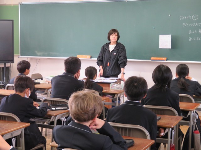 1年生の朝の時間のようすスナップです。週末の今日も元気に登校し、仲間とともに今日の予定やめあてについて確認していました。中学校生活にもずいぶん慣れることができましたね。